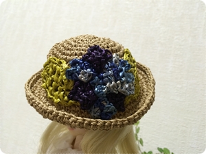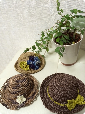 特にラフィア風糸での編み物が好きで麦わら帽子やカゴを作っています。