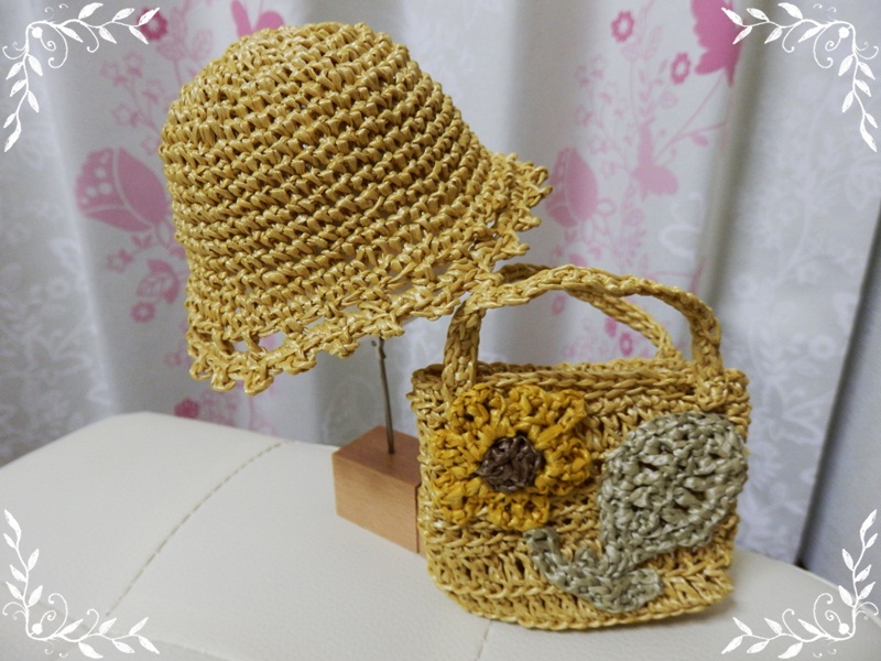 特にラフィア風糸での編み物が好きで麦わら帽子やカゴを作っています。
